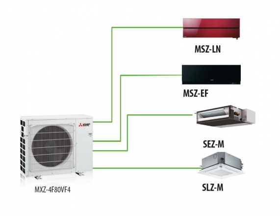 - klimatski sistemi za klimatizacijo z več notranjimi enotami povezanimi na eno zunanjo enoto