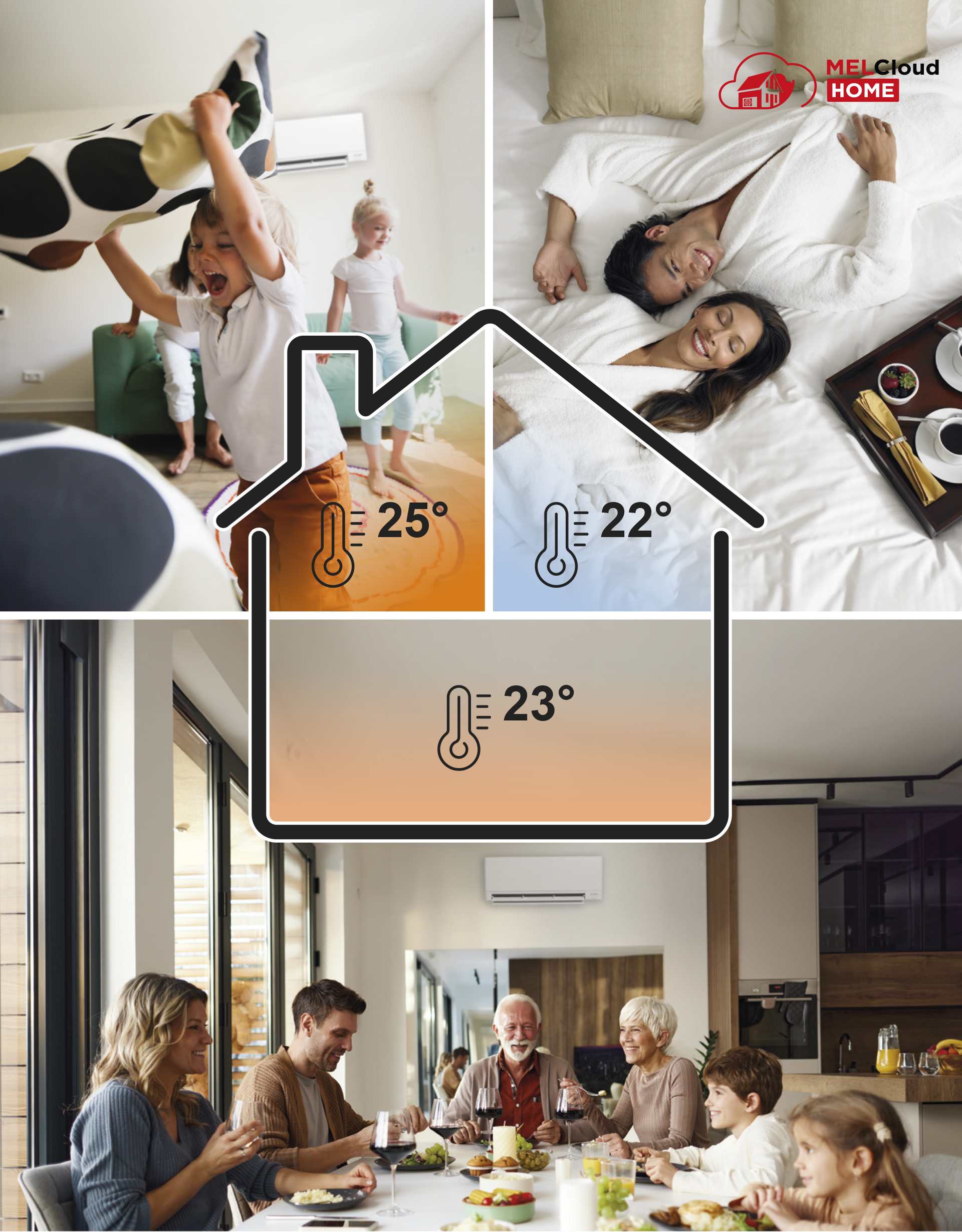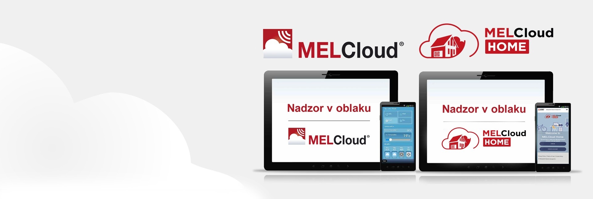 Z aplikacijo MELCloud Home lahko v oblaku, prek pametnega telefona, računalnika, tablice ali spletnega brskalnika, na enem mestu in v živo upravljate klimatske naprave in toplotne črpalke Mitsubishi Electric. Pametno upravljanje je enostavno in mogoče od kjer koli, v prihodnje bo na razpolago tudi za prezračevalne naprave. Najnovejši Wi-Fi vmesnik, ki zagotavlja povezavo z oblakom, je standardno vgrajen v večino naprav, pri nekaterih pa je dobavljiv samo kot opcija in sicer model MAC-597IF-E.